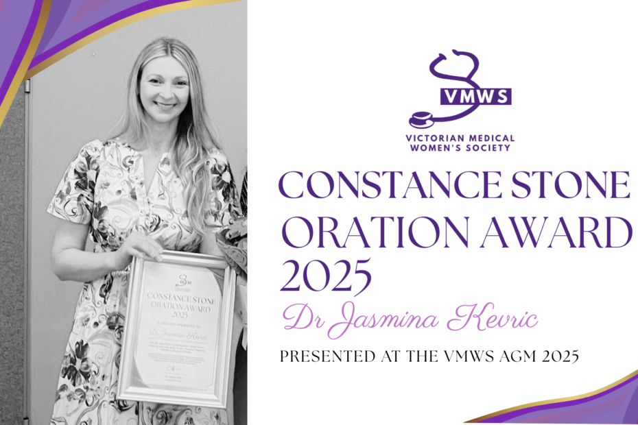 The 2025 Constance Stone Oration was presented by Dr Jasmina Kevric, Breast and General Surgeon and long-standing supporter of the Victorian Medical Women’s Society. Dr Kevric was awarded the Constance Stone Oration in recognition of her leadership, advocacy, and commitment to advancing women in medicine. In her oration, Dr Kevric… Read More »Constance Stone Oration 2025: Dr Jasmina Kevric